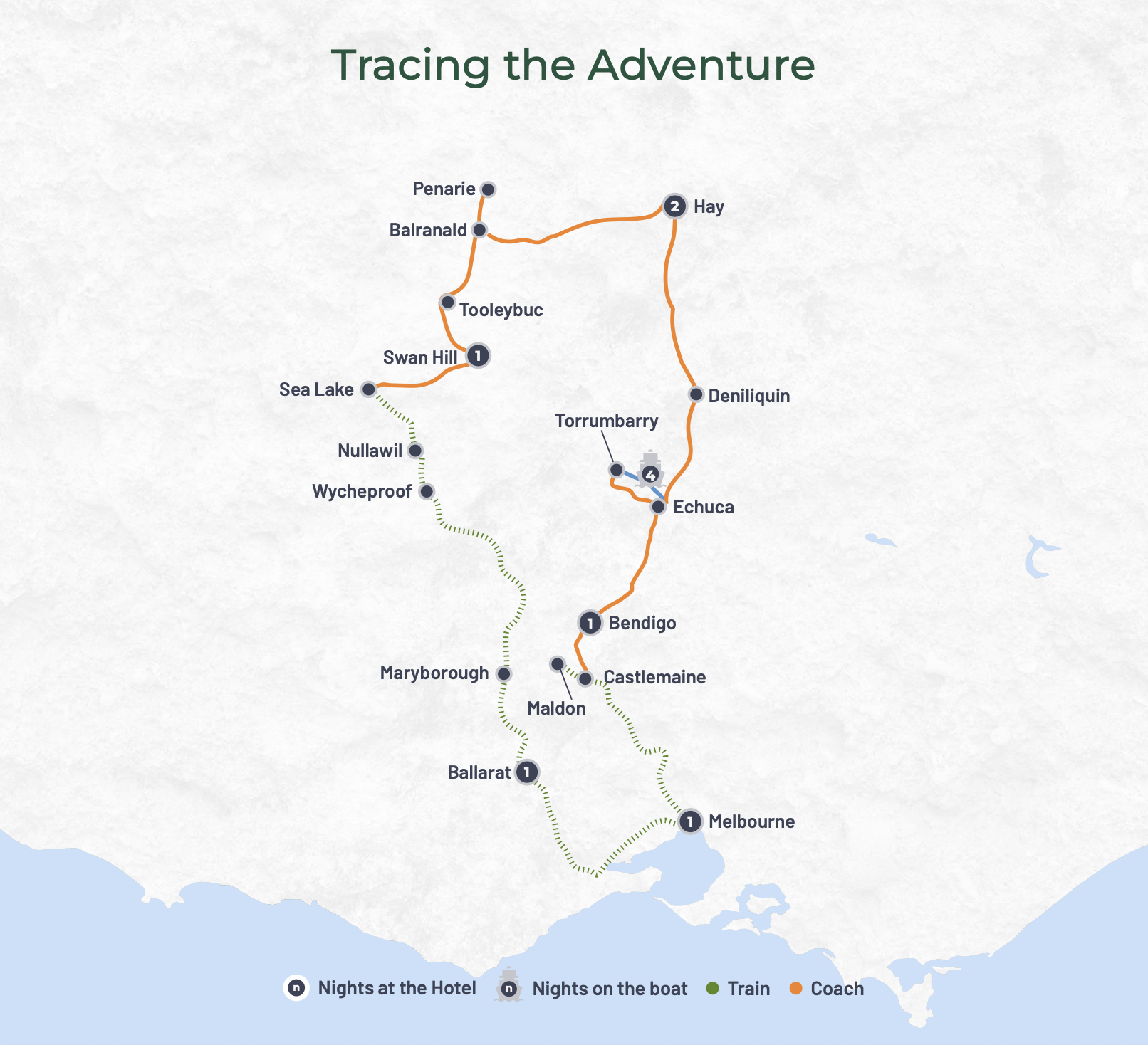 • MELBOURNE • MALDON • BENDIGO • MURRAY RIVER • DENILIQUIN • HAY •